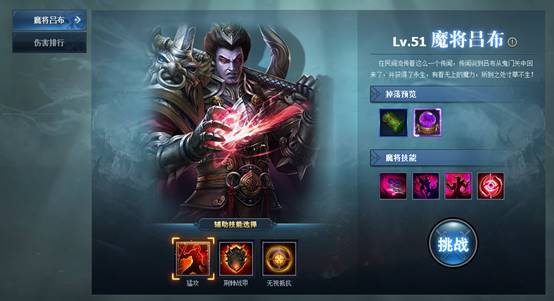 2. 挑战魔将吕布前,可挑选一个辅助技能,此技能在与魔将战斗中产生强力辅助效果。