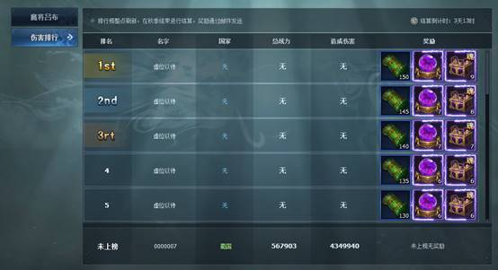 3. 玩家将出战全体将领,给魔将吕布造成伤害累计达到目标条件可获得阶段性奖励,造成伤害越高,奖励越多。另外系统将对玩家单次挑战造成的累计伤害进行排名,排名奖励将在冬季24点通过有奖发放。