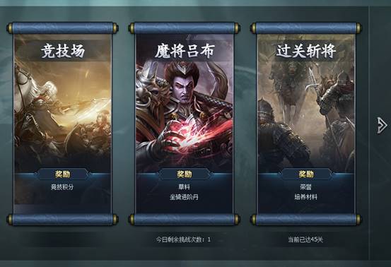 1. 在过关斩将玩法中,玩家可以一路挑战守关大将,挑战成功后即可获得该关卡的挑战奖励。